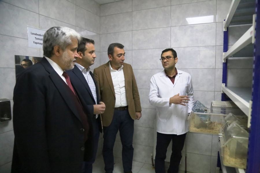ASÜ Rektörü Prof. Dr. Yusuf Şahin, Rektör Yardımcısı Prof. Dr. Engin Deligöz’le birlikte Merkezi ziyaret etti ve çalışmaların son durumu hakkında bilgiler aldı. Bilimsel araştırma standartlarının en üst düzeyde sağlandığı Merkezdeki tüm iş ve işlemler Hayvan Deneyleri Yerel Etik Kurulunun kararları doğrultusunda yapılıyor. Etik kurallara üst düzeyde riayet edildiğini söyleyen Rektör Şahin, gerek deneyler gerekse üretim aşamalarında hayvan refahının en dikkat ettikleri parametre olduğunun altını çizdi. Merkezin buna göre tasarlandığını da vurgulayan Şahin, ameliyat, anestezi, karantina ve operasyon odaları, taşıma, soğutma, tartım, sterilizasyon ve bertaraf üniteleri gibi tüm donatıların aktif şekilde çalıştığını belirtti. ASÜ Deney Hayvanları Uygulama ve Araştırma Merkezi Müdürü Doç. Dr. Caner Öztürk de gezi esnasında yürütülen faaliyetler ve üretme üniteleri hakkında bilgiler verdi. Öztürk, çeşitli eğitim çalışmalarının da yürütüldüğü Merkezdeki tüm uygulamaların niteliğini arttırmaya gayret gösterdiklerini kaydetti.