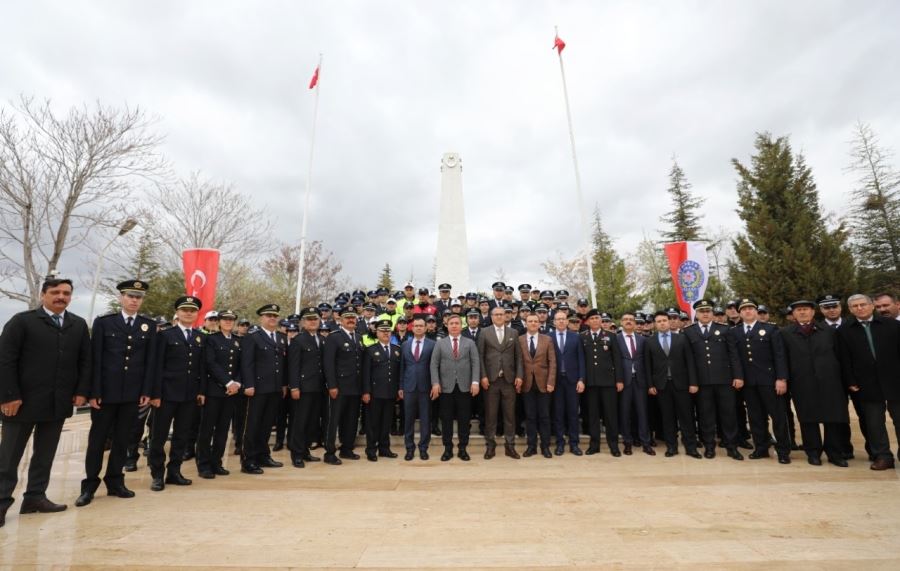 Törende, Emniyet Müdürü Murat Kolcu, Aksaray Polis Meslek Eğitim Merkezi Müdürü Niyazı Turgay Atatürk Anıtı'na çelenk sundu.