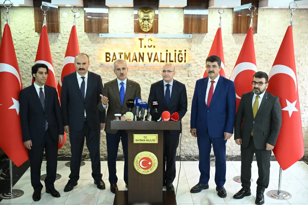 Hazine ve Maliye Bakanı Mehmet Şimşek, son 20 yılda her alanda olduğu gibi özellikle de ulaşım altyapısında Batman'ın büyük bir ilerleme sağladığını kaydederek, "Bizim hükümetlerimizin en büyük özelliği hizmet siyaseti yapıyor olmamızdır. Hizmet siyaseti esastır. Çünkü biz halkımızın, milletimizin hizmetkarıyız. Cumhurbaşkanımızın felsefesi bu. Bu çerçevede de önümüzdeki yıllarda yoğun bir şekilde bütün diğer illerimizde olduğu gibi Batman'a da hizmet noktasında büyük bir çaba içerisinde olacağız. Şu anda Batman'da devam eden projelerin toplamı 13,5 milyar lira. Çok ciddi bir rakam. Sadece ulaşım konularını ağırlıklı olarak konuştuk ama özellikle Batman'ın önemli bir sanayi üssü olması noktasında da çok ciddi proje ve çalışmalar var. Onu ayrı bir dönemde sizlerle paylaşırız ama bugünkü esas konumuz ulaştırma altyapısı" diye konuştu.