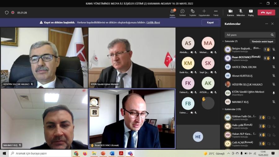 Kamu kurum ve kuruluşlarından oldukça ilgi gören seminerlerin ikincisi ise 16-20 Mayıs 2022 tarihlerinde Karaman ve Aksaray illerindeki kamu kurum ve kuruluşları, üniversiteler, yerel yönetimler ve sivil toplum kuruluşlarının basın ve halkla ilişkiler birimleri, iletişim koordinatörlüklerinde görevli personelin yanı sıra basın mensuplarına yönelik olarak düzenleniyor. Günde dört oturum şeklinde düzenlenen online eğitimlerde; “Haber Metni ve Basın Bülteni Hazırlama Teknikleri”, “Haber Fotoğrafçılığı”, “Haber Kameramanlığı”, “Sosyal Medya Yönetimi”, “Halkla İlişkiler”, “Kriz Yönetimi”, “Medya İle İlişkiler”, “Basın Hukuku”, “Kamu Diplomasisi”, “Resmi İlan Yayınlama Usul ve Esasları”, “657 Sayılı Kanunun 15’inci Maddesinin Uygulanmasında Usul ve Esaslar”, “Protokol Kuralları”, “Haber Servisi Araçları ve Etik Kurallar”, “Grafik Tasarım” ve “Medya Takip” konularında, alanlarında uzman akademisyenler, kamu kurum ve kuruluşlarından yöneticiler ile teknik personel eğitmen olarak sunum yapacak. Karaman ve Aksaray olmak üzere 150 kamu kurum ve kuruluşundan yaklaşık 350 personelin katılım sağladığı eğitim programı 20 Mayıs Cuma günü sona erecek. Dört gün sürecek eğitimlerin sonunda katılımcılara sertifika verilecek.