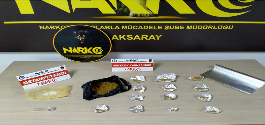 Aksaray Cumhuriyet Başsavcılığı koordinesinde Narkotik Şube Müdürlüğü ekiplerince ilimiz genelinde uyuşturucu madde ticareti yapan şahıslara yönelik yapılan kapsamlı çalışmalar sonucunda; 52,85 gram sentetik kannabinoid, 293,41 gram metamfetamin, 1.250 adet ecytasy hap ele geçirilmiştir. Konu ile ilgili olarak, M.T.(43), İ.C.(23), F.G.(26), M.A. (24) ve O.K. (26) yapılan operasyonlar sonrası yakalanarak gözaltına alınmışlardır. Emniyet Müdürlüğünde tamamlanan işlemlerinin ardından sevk edildikleri adli makamlarca TUTUKLANARAK Aksaray Kapalı Ceza İnfaz Kurumu Müdürlüğüne teslim edilmiştir. Suç ve suçlularla mücadelemiz kararlılıkla devam edecektir. Kamuoyuna saygı ile duyurulur.