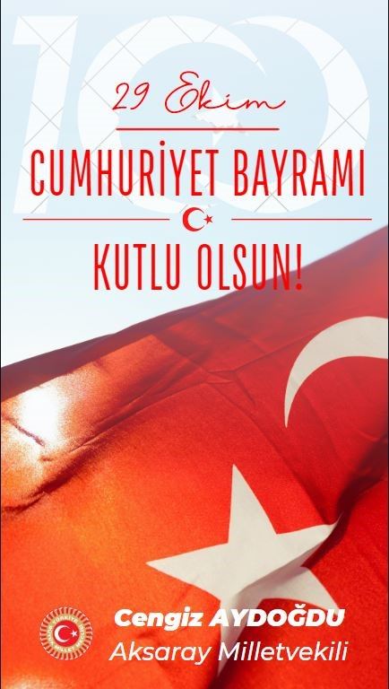 Bu vesile ile Cumhuriyetimizin ilan edilişinin 99. yıl dönümünde Gazi Mustafa Kemal Paşamızı ve silah arkadaşları ile aziz vatanımızın bölünmez bütünlüğü ve bağımsızlığı için canlarını ortaya koyan tüm şehit ve gazilerimizi rahmet niyazı ve saygı ile anıyor, milletimizin Cumhuriyetinin ebed – müddet olması ve azmi ile Türkiye’nin bayramını kutluyorum.
