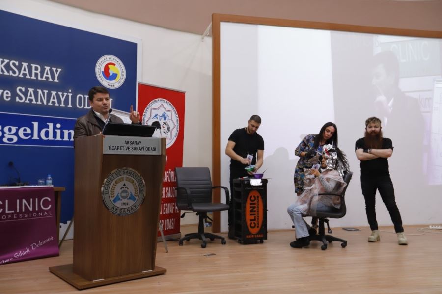 Aksaray Ticaret Odasında gerçekleştirilen seminerde uzman eğitimciler, bayan kuaförlere yönelik eğitimler ve tanıtımlarda bulundular. Her meslek grubuna yönelik düzenlenen faaliyetlerde esnafları yalnız bırakmayan Başkan Dinçer de bayan kuaförlerine seminerde başarılar diledi.