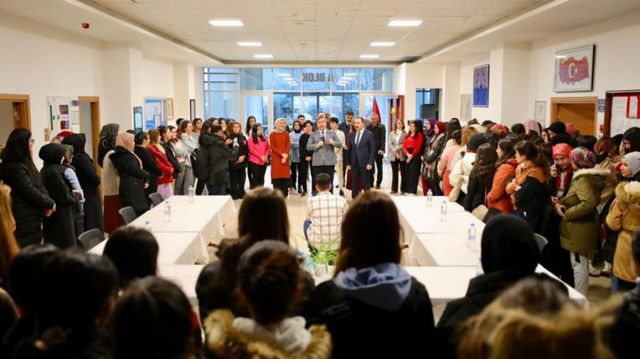 Aksaray Valisi Hamza Aydoğdu ziyaret ettiği Kız ve Erkek KYK yurtlarında öğrencilerle bir araya geldi. Vali Yardımcısı Mehmet Emre Canpolat, Gençlik ve Spor İl Müdürü Aslan Yıldız, Sosyal Yardımlaşma ve Dayanışma Vakfı Müdürü Alirıza Sözeriyim ve yurt müdürlerinin de hazır bulunduğu ziyaretlerde üniversite öğrencileri ile bir süre sohbet eden Vali Aydoğdu, öğrencilerin istek ve ihtiyaçları ile ilgili bilgi aldı.