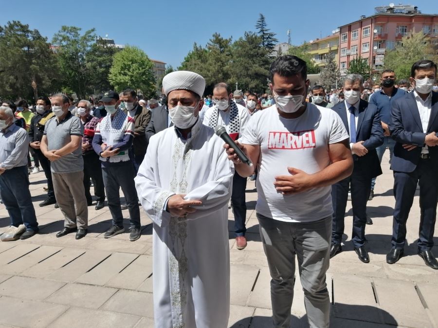 Kudüs'te şehit düşen Filistinliler için Aksaray'da gıyabi cenaze namazı kıldı.