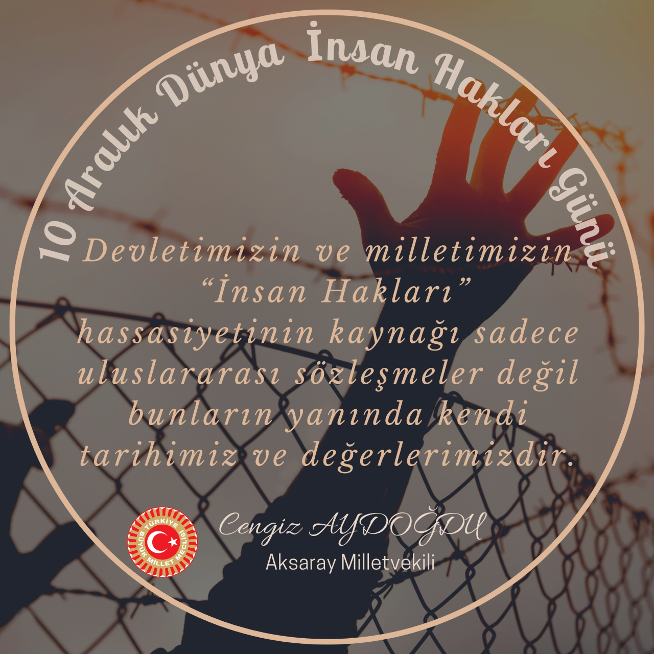 Bu düşüncelerle İnsan Hakları Günü’nün dünyanın her yerindeki mazlumlar ve mağdurlar başta olmak üzere tüm insanlık için hayırlara vesile olmasını, gelecek günlerin tüm dünyaya sağlık, barış, refah ve huzur getirmesini diliyor, tüm dünya toplumlarının 10 Aralık Dünya İnsan Hakları Günü'nü tebrik ediyorum.”