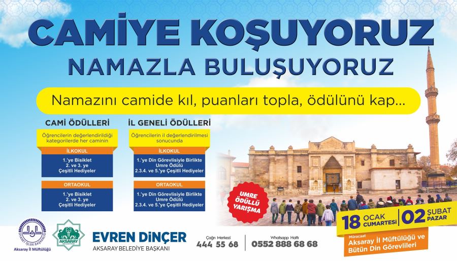 Aksaray Belediyesi, Diyanet İşleri Başkanlığı’nın çocuklarda camiyi kullanma ve namaz kılma alışkanlığı edinmesi için düzenlediği ‘’Camiye Koşuyoruz Namazla Buluşuyoruz’’ etkinliğe tam destek veriyor.