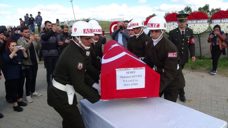 Suriye’nin İdlib Kenti İştebrak üst bölgesindeki Bahar Kalkanı Harekat alanında silah kazası sonucu şehit olan Piyade Uzman Çavuş Mehmet Sevim’in cenazesi memleketi Aksaray’ın Ortaköy İlçesine bağlı Satansarı köyünde gözyaşlarıyla toprağa verildi. Şehidin Türk bayrağına sarılı naaşı ilk olarak Satansarı köyündeki babaevine getirilerek helallik alındı. Ardından şehidin cenazesi töreninin yapılacağı köy mezarlığına getirildi. Burada şehidin annesi Meryem Sevim şehit oğluna, “Mehmet'im neredesin? Ne olur Mehmet'im uyan da gel. Neredesin? Sen Şırnak'tan benden önce gelmişsin” diyerek gözyaşı döktü. İl Müftüsü Veysel Işıldar'ın kıldırdığı cenaze namazının ardından şehidin cenazesi askeri bando takımı ve tekbirlerle köy mezarlığına defnedildi. Şehidin törenine Kara Kuvvetleri Komutanlığı Kurmay Başkanı Tuğgeneral Abdulkadir Fehmi Bilgin, Aksaray protokolü ve çok sayıda vatandaş katıldı.