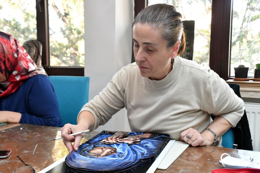 5 yıl önce geçirdiği trafik kazası sonucunda kafa travması yaşayan ve tedavi sonrasında eşinin desteğini alarak AKMEK’e kayıt yaptıran 52 yaşındaki Şeyda Coşkun, yağlı boya kursuna devam ettiği süre boyunca AKMEK’i çok sevdi. Kurslar motivasyonunu arttırdı. Arkadaşları ve hocalarının katkılarıyla çini ve porselen boyama kurslarına kayıt yaptırdı. Şimdide kayıt rölyef kursuna devam ediyor.