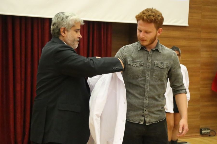 ASÜ Konferans Salonu’ndaki etkinliğin açılışında bir selamlama konuşması yapan Rektör Prof. Dr. Yusuf Şahin, tıp fakültelerinin hekim yetiştiren okullar olduğunu anımsattı ve “hekim” kelimesinin “hâkim, hükümet, hüküm, hikmet” kelimeleriyle aynı kökten geldiğini belirtti. Bu kavramların insanın fıtratı ile alakalı kavramlar olduğuna da dikkat çeken ASÜ Rektörü, “Doktorlar ve ileride bu mesleği yapacak olan öğrencilerimiz bir bakıma, fıtratından uzaklaşmış insanları kendi fıtratlarına tekrar döndürmeye çalışıyorlar. Bu çok zorlu bir süreç ve aşkla, emekle, sabırla yapılması gerekiyor” dedi. Tıp Fakültesi Dekanı Prof. Dr. Mehmet Gül de tıp eğitiminin meşakkatli bir yol olduğuna vurgu yaptı. Bu yolculuğun altı yıllık eğitim süreci ile sınırlı olmadığını dile getiren Gül, “Beyaz önlük giymek aslında yüzük takmak gibidir. Öğrencilerimiz mezun olduktan sonra vatanımızın farklı yerlerinde -belki vatanımızın ötesinde- görevlerini en iyi şekilde yapacaklar. Bazıları kalp krizi geçiren bir hastanın damarlarını açarak hayatını kurtaracak, bazıları kanser olmuş bir hastaya şifa verecek, bazıları farklı ameliyatlar yapacak… Hepsiyle ayrı ayrı gurur duyacağız” dedi. Yapılan açıklamaların ardından Rektör Şahin, Fakülte Yöneticileri ve akademisyenler öğrencilere beyaz önlüklerini giydirdi.