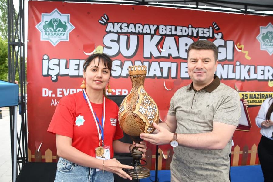 Aksaray Belediyesine bağlı Kadın Aktivite Merkezlerinde ve Zinciriye Medresesinde unutulmaya yüz tutmuş olan Su Kabağı İşleme sanatı kursları Belediye Başkanı Dr. Evren Dinçer’in göreve gelmesi ile başlatılmıştı. Kılıçarslan Parkında düzenlenen etkinlikle su kabağının sanata dönüştürülmesindeki yolculuğu sanatseverlere aktarıldı.