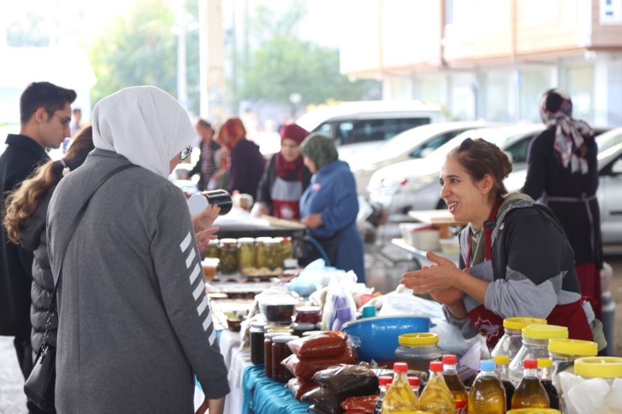 Çarşamba günleri erken saatlerde kurulan pazar alanında kadınlar, kendileri için özel olarak oluşturulan stantlarda günün ilerleyen saatlerine kadar satışlarını yapabiliyor.