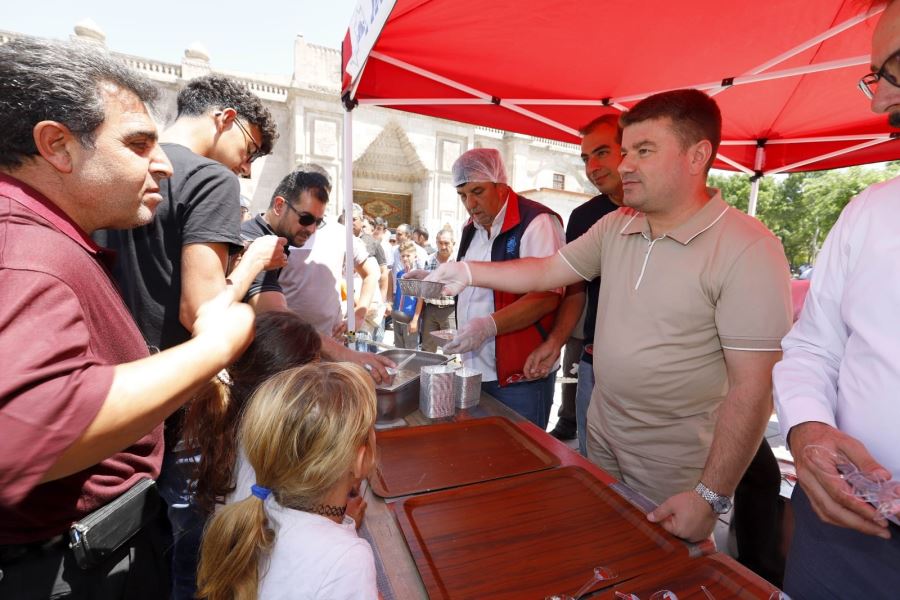 Aksaray Belediyesi tarafından muharrem ayı dolayısıyla Ulu Cami önünde vatandaşlara aşure dağıtıldı. Kurulan stantlarda vatandaşlara aşure ikramında bulunan Belediye Başkanı Dr. Evren Dinçer, Aşure Günü’nün birlik ve beraberliğe vesile olması temennisinde bulundu.
