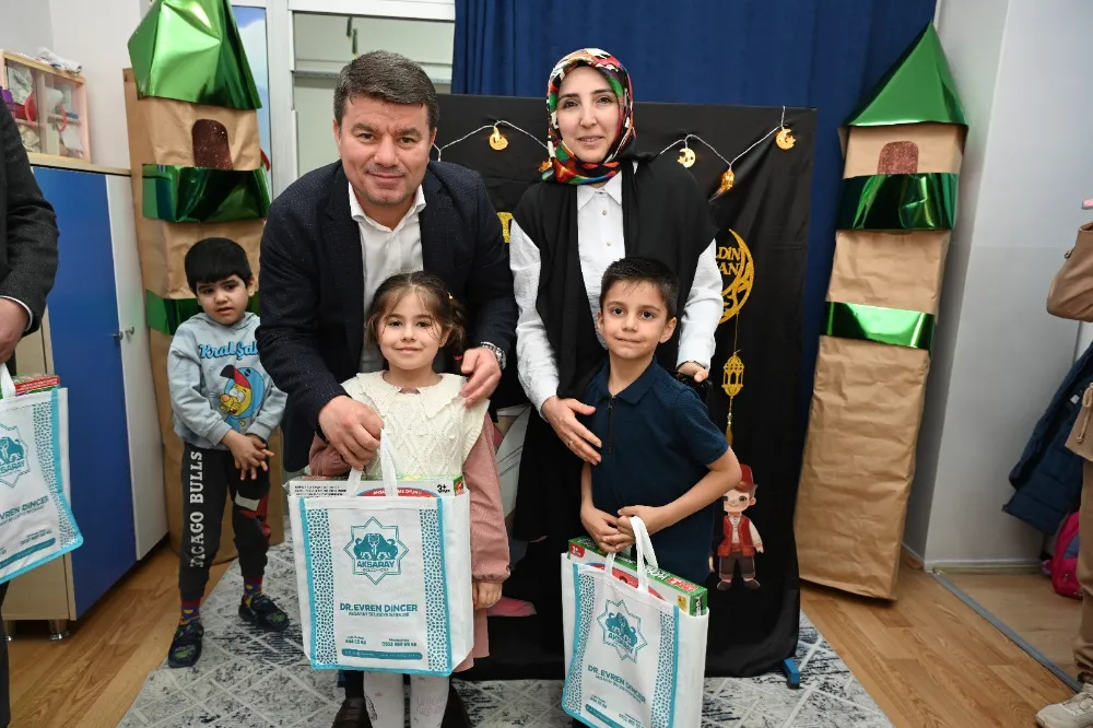 Belediye Başkanı Dr. Evren Dinçer, eşi Merve Dinçer ile birlikte Ramazan ayının manevi atmosferini çocuklarla paylaşmak amacıyla Timur Sarrafoğlu Anaokulu’nu ziyaret etti. Anaokulu öğrencilerinin yoğun ilgisiyle karşılan Başkan Dinçer ve eşi, Tekne Orucu tutan minik yavrulara sürpriz hediyeler dağıttılar.