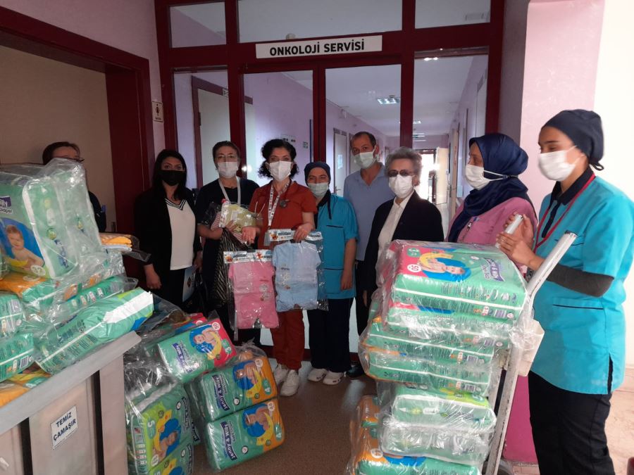 Kanser tedavisi görev çocuklara atlet, çocuk bezi, pijama ve tulum takımı bağışlandı