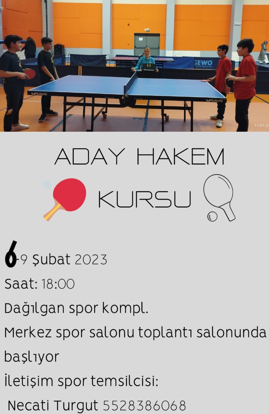 Kurs 6,7 Şubat 2023 tarihinde Dağılgan spor kompleksi içindeki, Merkez spor salonu toplantı salonunda saat: 18:00 da başlayacaktır.