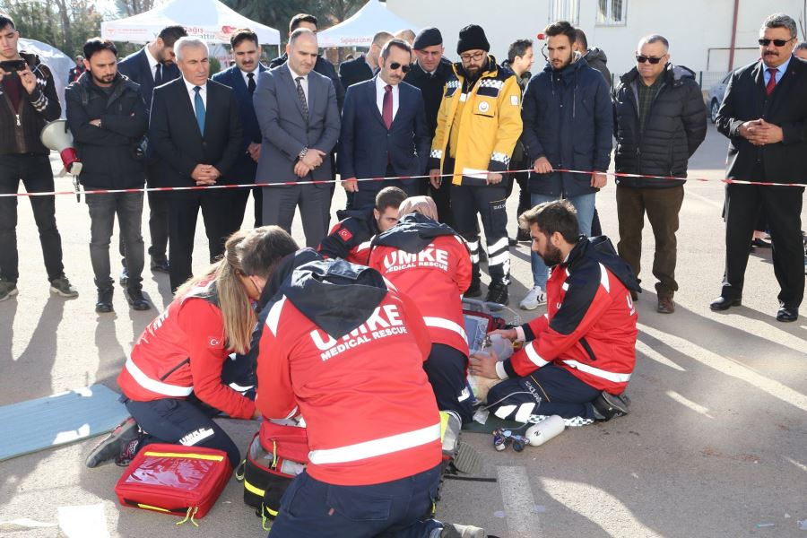 Acil Sağlık Hizmetleri Haftası kapsamında Ulusal Medikal Kurtarma Ekibi(UMKE) ve 112 Acil Sağlık Hizmetleri ekipleri gerçeğini aratmayan tatbikatta zamanla yarıştı.