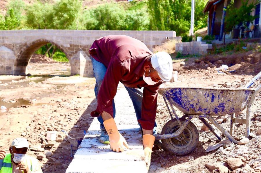 Belediye Başkanı Evren Dinçer’in girişimleri sonucu restore edilen Tarihi kalanlar köprüsünde istinad duvarı yapım aşamasına geçildi.