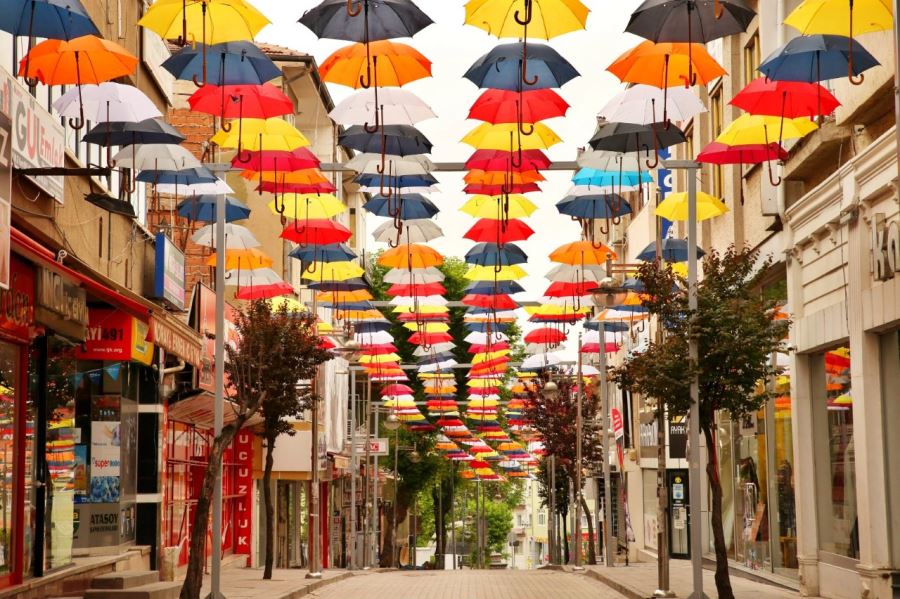 Şemsiyeli sokağa asılan şemsiyeler sayesinde alışveriş yapmak için gelen vatandaşların güneş ışıklarından olumsuz etkilenmesinin önüne geçildi. Şemsiyelerin asılması ile şehre estetik bir görünümün kazandırıldı.