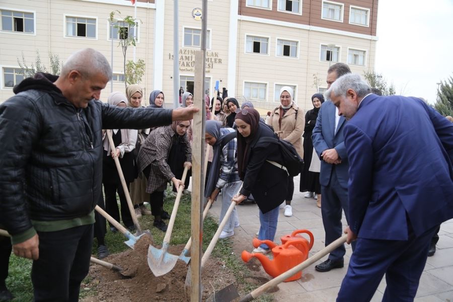 Yapılan açıklamanın ardından İslami İlimler Fakültesi ailesi, Fakülte çevresinde belirlenen noktalara fidanları dikti ve can sularını verdi.