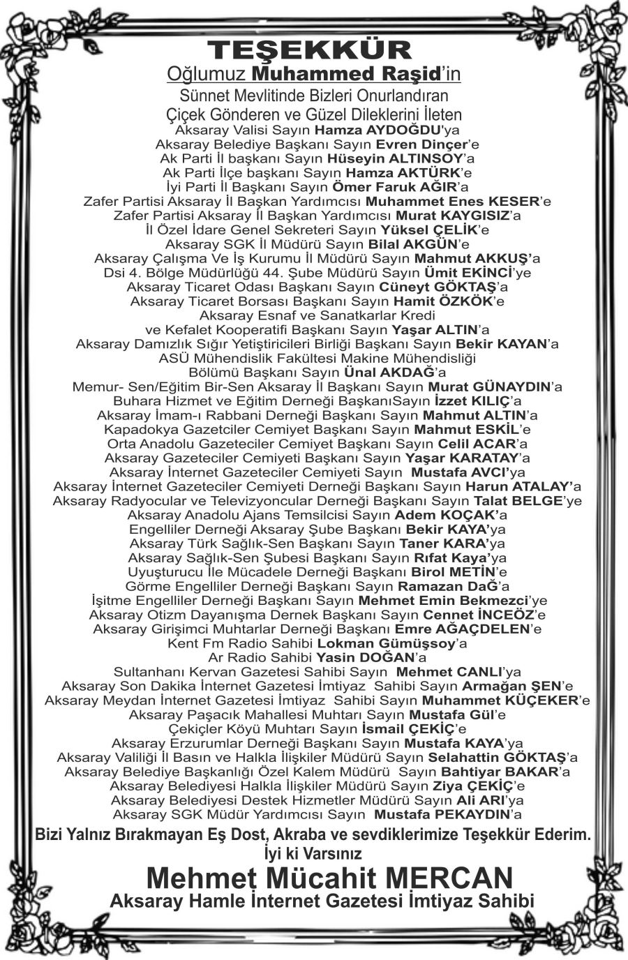 Aksaray Meydan İnternet Gazetesi İmtiyaz Sahibi Sayın Muhammet KÜÇEKER’e