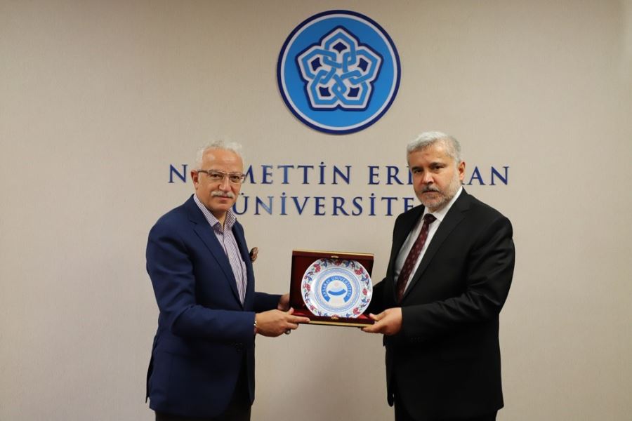Şahin, Necmettin Erbakan Üniversitesi Rektörü Prof. Dr. Cem Zorlu’yu ziyaret etti. Tıp Fakültesi’ndeki öğrencilerin eğitimi konusunda her iki üniversitenin birlikte çalışmalar yaptığını anımsatan Prof. Şahin, “Öğrencilerimiz belirli bir süre Necmettin Erbakan Üniversitesi’nde eğitim aldı ve ASÜ Tıp Fakültesi’nin fiziki yapılanmasını tamamlamasıyla, peyderpey Aksaray’a geldi. Üçüncü sınıfta olan öğrencilerimiz de bu yıl Aksaray’a gelecek ve tüm öğrencilerimiz ASÜ çatısı altında toplanmış olacak. Sürecin en başından beri Necmettin Erbakan Üniversitesi bizlere çok değerli katkılar sundu. Sayın Rektör Prof. Zorlu başta olmak üzere tüm ekibine bir kere daha teşekkürlerimizi sunuyoruz. Kurumsal iş birliği faaliyetlerimiz ilerleyen süreçte de devam edecek. Sağlık alanında yapılan çalışmaların toplumsal karşılığı çok yüksek. Hem toplumsal sağlık uygulamalarının hem de öğrencilerin eğitimlerinin niteliğini arttırmak adına gayret göstermeyi sürdüreceğiz” dedi.