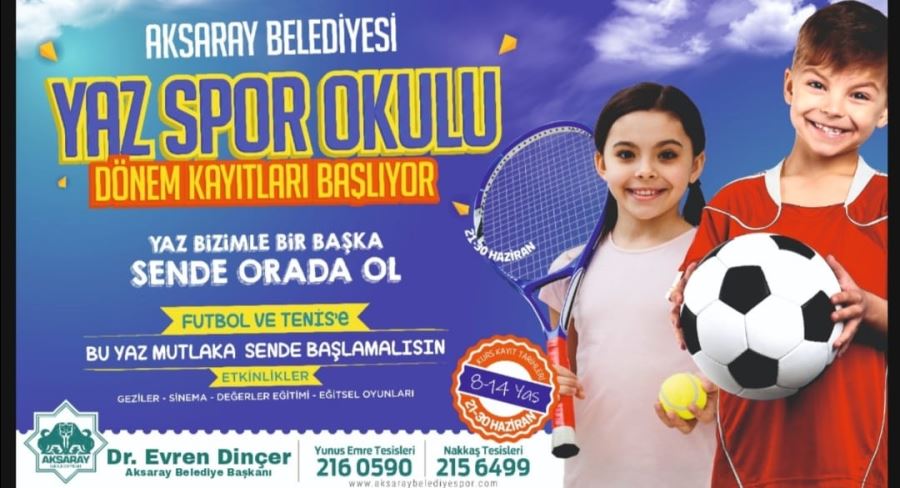 Aksaray Belediyesi yaz spor okuluna başvuru yapan 8-14 yaş arasındaki çocuklar futbol ve tenis branşlarında yeteneklerini ortaya çıkartacaklar.